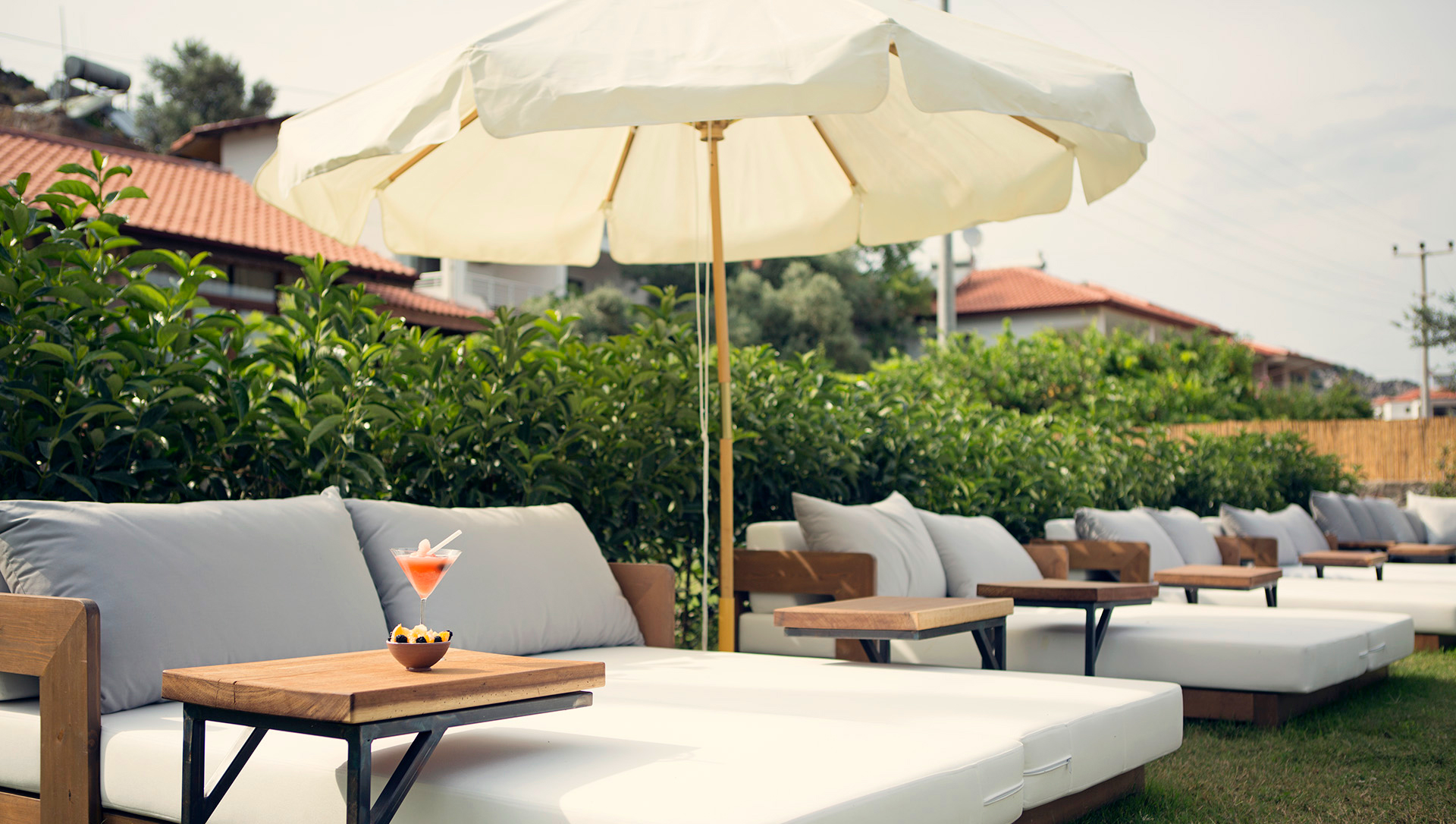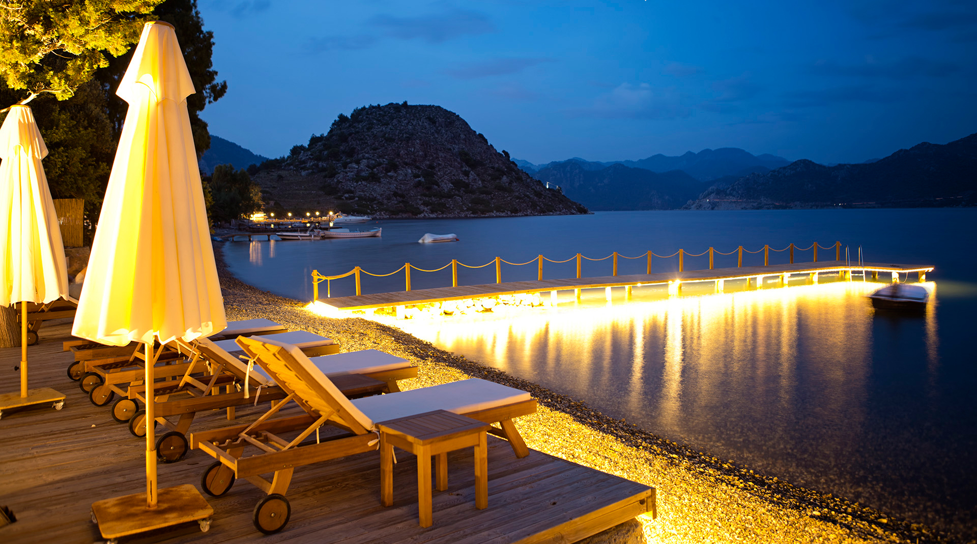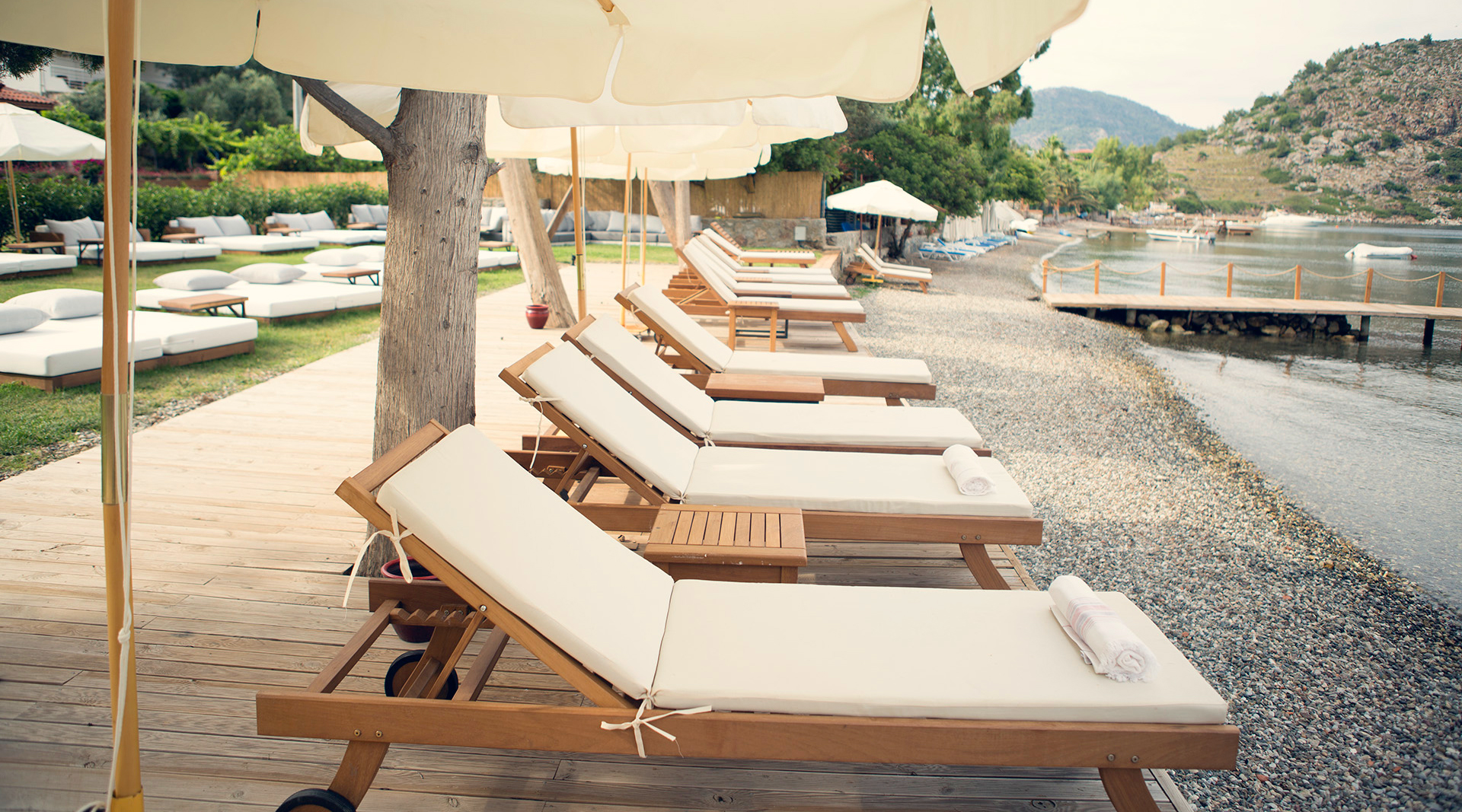 1000 m² büyüklüğündeki özel plajı ile sizlere deniz ve güneşle doyasıya kucaklaşabileceğiniz keyifli bir ortam sunuyor. İsterseniz kocaman bir selvi ağacının gölgesinde çim alanda, isterseniz denizin hemen yanında ya da iskelenin üstünde kitabınızı okurken Selimiye Köyünün insana huzur veren atmosferini içinizde hissedebilirsiniz.